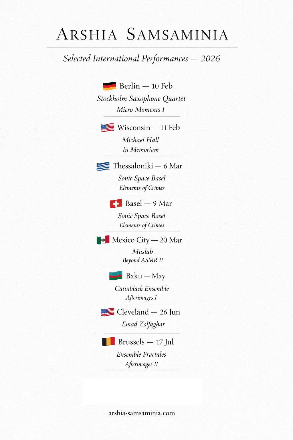 Works by: A.Samsaminia, S, Sciarrino, F. Bedrossian, etc.